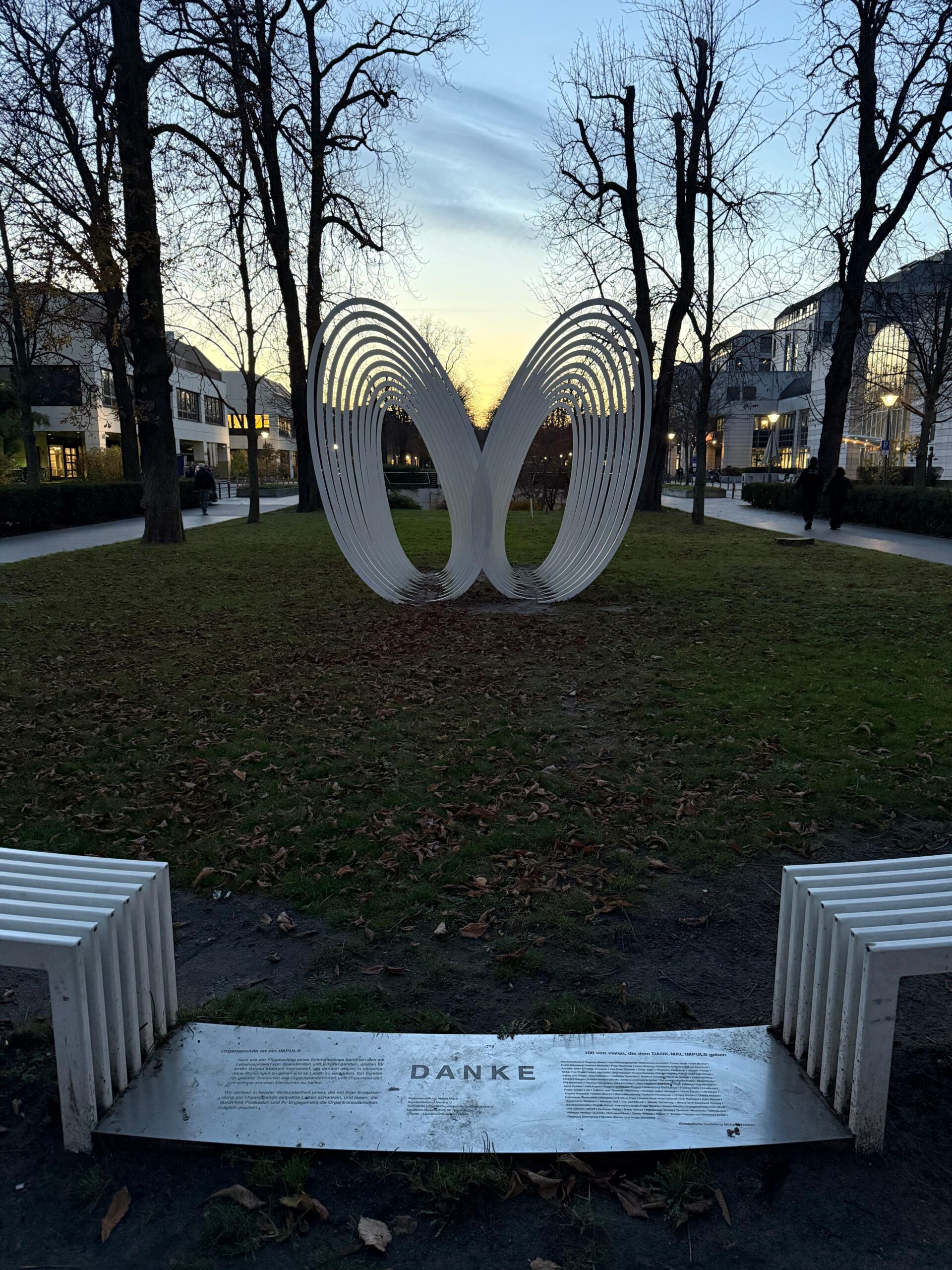 Während unseres Aufenthalts in Berlin, konnten wir das Dankmal in der Charité Campus Virchow-Klinikum besuchen. Die Vorsitzende, des Bundesverband Niere e.V., Isabelle Jordans, kam auch dazu. Sie erzählte von der Idee und der Umsetzung dieses Dankmals für Organspende. Es war eine besondere Stimmung für uns. Die Sonne ging gerade unter und der (fast) Vollmond leuchtete.